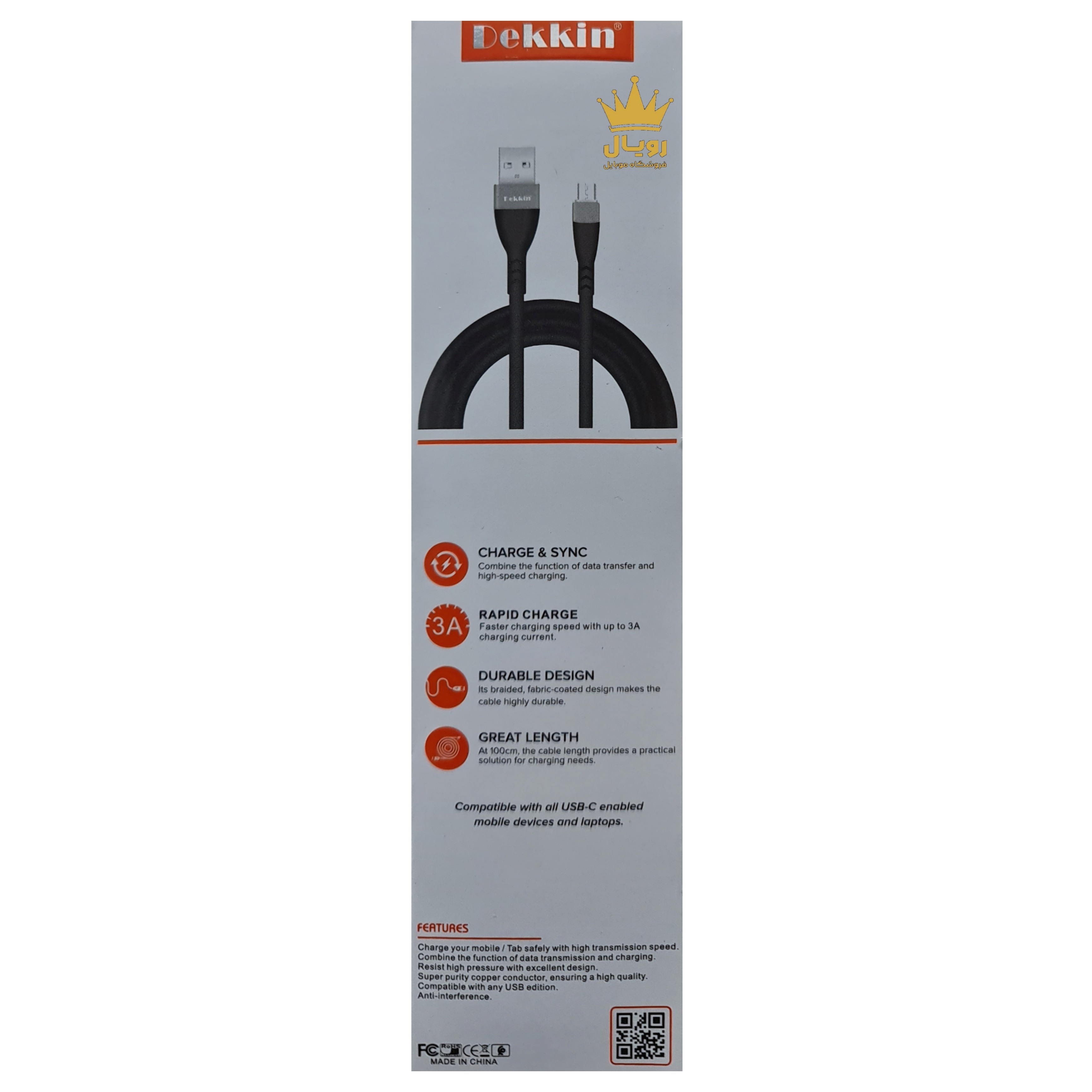 کابل شارژ USB به USB-C دکین مدل A58 به طول یک متر