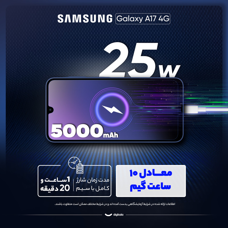 گوشی موبایل سامسونگ مدل Galaxy A17 4G دو سیم کارت ظرفیت 128 گیگابایت و رم 6 گیگابایت - ویتنام به همراه شارژر 25 وات سامسونگ