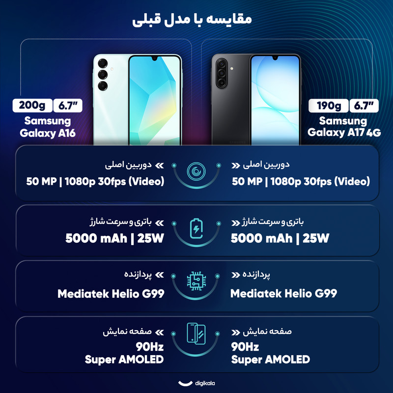 گوشی موبایل سامسونگ مدل Galaxy A17 4G دو سیم کارت ظرفیت 256 گیگابایت و رم 8 گیگابایت - ویتنام - به همراه شارژر 25 وات سامسونگ